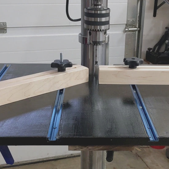Build your own flexible drill press table with these digital step-by-step building plans. The table measures 25" x 19" but can easily be adjusted to any size you want. You'll also learn how to build two back fences that along with t-bolts can be used to make your drill press even more functional.